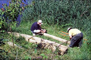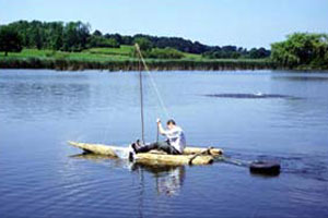 Pour ce qu'il convient d'appeler les essais, un étang proche et une magnifique journée de juillet furent choisis. En plus de mon frère qui m'avait donné un coup de main, Matthieu (le quatrième larron de l'aventure radeau) s'était joint à moi.