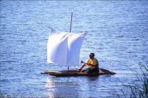 Maximo Catari and his son Erik, a student of industrial engineering, are Aymara Indians from a remote village on the Bolivian shore of Lake Titikaka. They have undertaken extensive research into their heritage for this project and are building all of the boats.