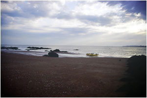 La mer ne doit pas être loin, je vais sur une petite butte, à l'est de notre plage, et là, je découvre que nous sommes bien en bout de la Loire, l'océan s'étend jusqu'à l'horizon ... Ce n'est pas désagréable comme sensation de se sentir arrivé au bout de quelque chose dont on a rêvé ... Je n'ai pas l'impression d'un vide car cette aventure est une porte sur d'autres histoires, d'autres rêves ...